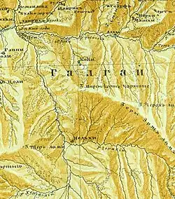 {{cite journal}}: CS1 maint: date and year (link) - Matiev, Timur; Muzhukhoeva, Elza (2013). "Социально-политическое развитие в XIX—начале XX века" [Socio-political development in the 19th - early 20th centuries]. In Albogachieva, Makka; Martazanov, Arsamak; Solovyeva, Lyubov (eds.). Ингуши [The Ingush]. Narody I kultury (in Russian). Moscow: Nauka. pp. 58–69. ISBN 978-5-02-038042-4.