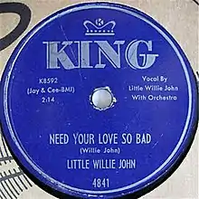 "Need Your Love So Bad", sometimes known as "I Need Your Love So Bad", is a song first recorded by Little Willie John in 1955. Called a "unique amalgam of gospel, blues and rhythm & blues",[1] it was John's second single as well as his second record to reach the US charts.