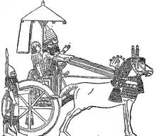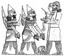 One of the growing problems in Ashurbanipal's early reign were disagreements between Ashurbanipal and his older brother Shamash-shum-ukin.[95] While Esarhaddon's documents suggest that Shamash-shum-ukin was intended to inherit all of Babylonia, it appears that he only controlled the immediate vicinity of Babylon itself since numerous other Babylonian cities apparently ignored him and considered Ashurbanipal to be their king.[96] Over time, it seems that Shamash-shum-ukin grew to resent his brother's overbearing control[97] and in 652 BC, with the aid of several Elamite kings, he revolted. The war ended disastrously for Shamash-shum-ukin; in 648 BC, Ashurbanipal captured Babylon after a long siege and devastated the city. Shamash-shum-ukin might have died by setting himself on fire in his palace. Ashurbanipal replaced him as king of Babylon with the puppet ruler Kandalanu and then marched on Elam. The Elamite capital of Susa was captured and devastated and large numbers of Elamite prisoners were brought to Nineveh, tortured and humiliated.[98] Ashurbanipal chose to not annex and integrate Elam into the Neo-Assyrian Empire, instead leaving it open and undefended. In the following decades, the Persians would migrate into the region and rebuild the ruined Elamite strongholds for their own use.[99]