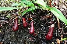 Nepenthes × bauensis (/nɪˈpɛnθz bˈɛnsɪs/; after Bau, Sarawak) is a natural hybrid involving N. gracilis and N. northiana.[1]