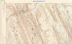 ![]() Twin sources of Nesquehoning Creek as Nesquehoning Mountain and Broad Mountain merge in the saddle above Tamaqua, Pennsylvania and below the drainage divide from the Little Schuylkill River below and west. (Image is rotated so east is at bottom) | |
