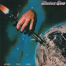Never Too Late is the fourteenth studio album by English rock band Status Quo, coproduced by the group and John Eden. Released on 13 March 1981,[1] it had been recorded at the same sessions – at Windmill Lane Studios, Dublin – as its predecessor Just Supposin'. It reached number 2 in the UK Albums Chart.