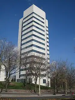Since the advent of the 21st century, New Brunswick has rapidly developed high-rise skyline. In 2008, there was a proposal to construct a 34-story 466-foot (142 m) New Brunswick Cultural Center Tower, which would have been the city's tallest building.[97][98] In 2017 it was announced that the New Brunswick Performing Arts Center would be built on the site of the George Street Playhouse and Crossroads Theatre and would include 25 stories of residential and office space.[99][100][101] The HELIX Health + Life Science Exchange is planned to contain three buildings: H-1,H-2, and H-3, the last of which will become the city's tallest building, with 42 stories.[102][103]