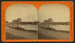 A new route to the island was created in 1821 when three bridges (now two bridges and a causeway) connected Frame Point in Portsmouth with the northwestern corner of Great Island. Previously, a bridge on the southwestern point had been the only way to reach New Castle without a boat. The community was then an overlooked fishing village, which helped preserve its colonial architecture. However, in 1874 the Hotel Wentworth was built atop a hill with a view of Little Harbor and the ocean. After early financial difficulties, the establishment was purchased and elaborately refurbished in Second Empire style by Portsmouth alemaker and hotelier Frank Jones. It became the area's most fashionable resort, growing in size until it was a village unto itself. When President Theodore Roosevelt mediated the 1905 Treaty of Portsmouth to end the Russo-Japanese War, envoys from both countries stayed at the Wentworth by the Sea, ferried by launch to negotiations held at the Portsmouth Naval Shipyard. The hotel was a setting for the 1999 movie, In Dreams.