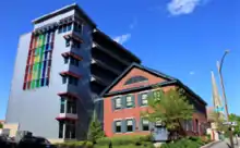The 225-acre (91 ha) campus, which has no distinct borders separating it from the town of Henniker, features 30 buildings, many of which feature white clapboard-style siding or brick mid-century architecture. The campus is known throughout New England for promoting environmental education initiatives. Pats Peak ski resort lies just outside the village center, and many students participate in outdoor activities such as skiing, snowboarding, whitewater rafting, hiking in the White Mountains, and rock-climbing.[9]