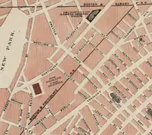 - ↑ MCMA's Mechanics' Hall, built in 1881, was located at the corner of Huntington Avenue and West Newton Street, somewhat closer to the city center