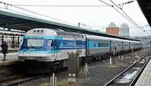 The New South Wales XPT (short for eXpress Passenger Train) is a class of diesel-powered passenger trains built by Comeng and ABB. Based on the British Rail-designed High Speed Train, each XPT set comprises two XP power cars in a push-pull configuration and, between them, between four and seven passenger carriages.[1] The first sets entered service under the State Rail Authority in 1982 and now operate under NSW TrainLink, running on long-distance regional and interstate North Coast, Main Western and Main Southern lines throughout New South Wales and interstate into Victoria and Queensland.