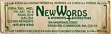 New Words, A Women's Bookstore, opened in Somerville, Massachusetts, on April 6, 1974. New Words was one of the earliest feminist bookstores in the country and a pioneer in what was soon to become an international feminist-bookstore/women-in-print movement.