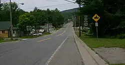 Now known as Turkey Farm Road, NY 29A continues southeast through Johnstown, becoming a two-lane residential street into the hamlet of Progress. After Progress, the route becomes more rural, soon crossing into the town of Mayfield. At the junction with Sandhill Road, the route re-enters dense woods and turns southeast through Mayfield, reaching a junction with NY 29 in front of the Holland Meadows Golf Course. This junction marks the eastern terminus of NY 29A in the town of Broadalbin.[3]