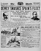 New York World cover announcing conquest of Dewey of the Spanish Navy in the Battle of Manila Bay in May 1898