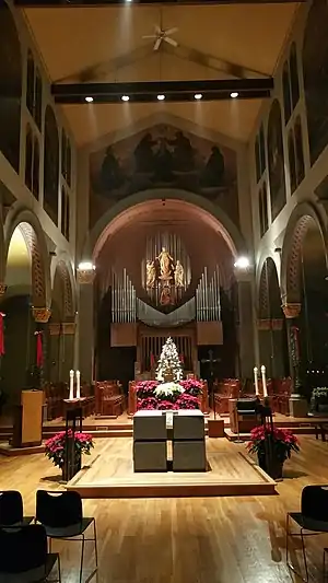 The monastery has its roots in St. Mary's Church, a parish founded in 1842 to serve the immigrant German Catholics.[2] By 1857, monks were sent from Saint Vincent Archabbey (one of two Archabbeys in the United States) in Latrobe, Pennsylvania, to staff the parish and establish a monastic community. The newly-established community was known as Saint Mary's Priory. In 1868, responding to the request of the local Bishop for a school for the children of the workers who would find it difficult to allow their sons to go to a boarding school, the monks founded St, Benedict's College (later St. Benedict's Prep). In 1884, the monastery became independent of Saint Vincent and became known as St. Mary's Abbey. In 1924, land was bought in Morris County, and a daughter-house was established. The title “St. Mary’s Abbey” would be transferred to the daughter house in 1956, with the Newark community becoming known once again as St. Mary's Priory. In 1968, the Newark community was granted independence from St. Mary's Abbey, and took the legal name, the Benedictine Abbey of Newark, being known popularly as Newark Abbey.[3]