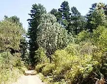 Both the pines and the eucalyptus("gum") trees are Category 2 invasive weeds. They rapidly seed into the surrounding indigenous forests and fynbos, then gradually outgrow and kill these ecosystems. Consequently, on-going maintenance is necessary, to keep these invasive trees contained within the plantations.[7][8]