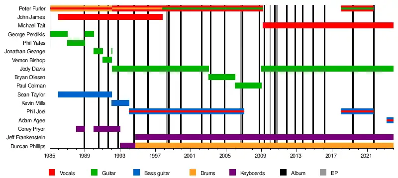 - Peter Furler – lead vocals (1997–2009, 2018–2021[nb 1]), guitar (1996–2009, 2018–2021[nb 1]), co-lead and backing vocals, drums (1985–1997)