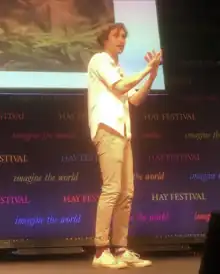 ![]() Nick Crumpton speaking in front of a public audience at the Hay Festival, 2018. | |
