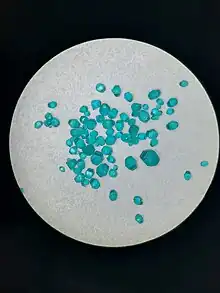 Aqueous solutions of nickel sulfate reacts with sodium carbonate to precipitate nickel carbonate, a precursor to nickel-based catalysts and pigments.[6] Addition of ammonium sulfate to concentrated aqueous solutions of nickel sulfate precipitates Ni(NH4)2(SO4)2·6H2O. This blue-coloured solid is analogous to Mohr's salt, Fe(NH4)2(SO4)2·6H2O.[1]