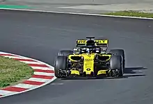 At the Japanese Grand Prix, it was announced that Carlos Sainz Jr. would replace Palmer for the rest of the season beginning at the next Grand Prix in Austin.[43] In the race, he was running comfortably in the points for the majority of the race, when a failure in the DRS mechanism of his car, meant he had to retire from the race. In their time together as teammates Hülkenberg scored 34 points to Palmer's 8 points and outqualified Palmer in all 16 races.[44][45][37] In the USA, Hülkenberg retired on lap 4 with an engine issue.[45] In Mexico, he once again retired, again from a net 4th place, with an engine issue. This was the third time in a row that he had failed to finish a race and the fourth time in five races. At the Brazilian Grand Prix, he led home teammate Sainz to 10th place, his first points in almost 3 months, with his previous points finish being his 6th-place finish at Belgium in August. He qualified 'best of the rest' in Abu Dhabi with 7th place. He finished the race in 6th place, having received a contentious 5-second penalty for passing Sergio Pérez off the track at the start of the race, when many believed he should have given the position back. He ended up building enough of a gap to Pérez that the time penalty did not affect his position. With 6th place, Renault overtook Toro Rosso in the Constructors' Championship for 6th place.[46]