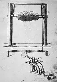 Sabbatini's design for a stage machine imitating moving clouds in the set, 1638.
