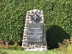 Jean Pasquin, the father of Nicolas Pasquin, lived in La Poterie, France as early as 1612. Nicolas was born on April 5, 1648. He came to New France in 1672.[2]