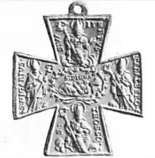 Nidker died around 830 and was buried in the church of Saints Ulrich and Afra.[4] He was succeeded by Udalmann.[2] He came to be recognized as a saint.[5] In 1064, when the church was demolished and rebuilt, the bones of Nidker were found along with those of Saint Digna of Augsburg and two earlier bishops, Adalbero and Wicterp. After 1494, Nidker is depicted alongside Digna, Adalbero, Wicterp and Bishop Tosso on many of the Ulrich crosses that were purchased by pilgrims at the church.[6]