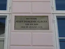 The Niels Aagesen House (Danish: Niels Aagesens Gård) is a property at Amaliegade 22 in the Frederiksstaden district of central Copenhagen, Denmark. It was listed on the Danish register of protected buildigns and places in 1945. A plaque on the facade commemorates that the poet Adam Oehlenschläger died in the building on 20 November 1840. Other notable former residents include the naval officer Steen Andersen Bille, Tivoli Gardens-founder Georg Carstensen, medical doctor Ole Bang, diplomat and minister H. E. Reedtz (1800-1857), politician Christian Albrecht Bluhme (1794-1866), General Christian de Meza (1792-1865) and politician Aleth Hansen.