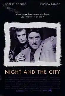 Night and the City is a 1992 American neo-noir[2] crime drama film and a remake of the 1950 film noir of the same name, itself an adaptation of Gerald Kersh's 1938 novel. The film stars Robert De Niro and Jessica Lange and is directed by Irwin Winkler from a script by Richard Price.
