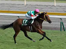 ![]() Harp Star wins the Niigata Nisai Stakes in 2013 | |