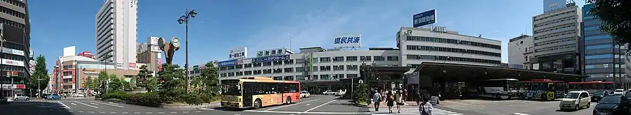 ![]() View of the station from the Bandai exit in June 2015 | |||||||||||||||||||||||||||||||||||||