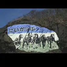 Niikappu's mascot is Nikappun (にいかっぷん). She is a superhero horse who wears earrings made of azalea and green bell peppers and a cape. Her weapon is an asparagus. Her heart-shape nose is a sign of peace. She watches over Niikappu everyday.[2]