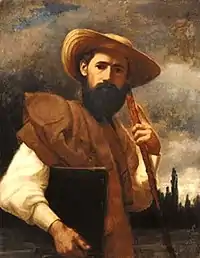 In 1856, he passed the entrance exams for the Imperial Academy of Arts, where he studied with Fyodor Bruni, Alexey Tarasovich Markov and Timofey Neff. He graduated in 1863 and was awarded the title of "free artist".[2] For a short time, he lived in Vilnius, painting portraits, decorating churches and marrying the daughter of a local landowner.[1]