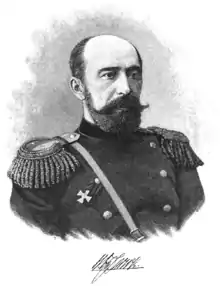 Nikolay Mikhailovich Baranov (August 6, 1837 – August 12, 1901) was a lieutenant general, Mayor of Saint Petersburg (from March 21 to August 24, 1881), Nizhny Novgorod Military Governor (from July 31, 1882, to May 16, 1897), a senator. Inventor of the Baranov Rifle, Model 1869.