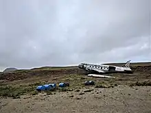 • On 29 May 1965, a Reeve Aleutian Airways Douglas C-47A (N91016),[5] during the take-off phase, stalled and crashed because a sudden wind gust caused a premature lift-off. The three crew members and the two passengers on board were not injured. The aircraft was damaged beyond repair and left by the side at the end of the airstrip ever since.[6]