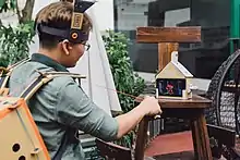 Nintendo Labo developers Kawamoto, Sakaguchi, and Ogasawara stated in an interview that their goal was to use the unique features of the Nintendo Switch in such a way that no other system could emulate. The Joy-Con were treated as a "bundle of sensors" that could be used in a multitude of ways by attaching them to different hardware pieces, focusing on the gyro motion-sensor, IR motion camera, and HD Rumble features.[40] The team was tasked with exploring Joy-Con attachment and game prototypes during three weeks of brainstorming sessions, called "prototype parties."[41][42] When asked about the choice of building material, the developers responded by saying that cardboard was chosen over plastic because the 3D printer they were using for prototyping was unable to keep up with their pace of testing; cardboard would also allow for the player to create, repair, and customize the project themselves.[17] The initial construction designs were first thought as being simple to construct, but later proved to be complex and challenging when it was decided that no cutting or gluing would be required to assemble the kits. Improvements were made to the prototypes based on feedback from consumer and developer testing; this prompted the creation of the interactive instruction software, as well as favoring simplicity over appearance. During development testing—prior to the cardboard designs being finalized—photographs were taken and compiled into booklets to be used as temporary instruction manuals; these booklets ranged from 1,000 pages for simpler models to 3,000 pages for complex ones.[43] While the cardboard Toy-Con are sturdy, Nintendo recognized that the cardboard can suffer wear and tear with time, and sells replacement sheets for individual Toy-Con through its online store.[2][6][7] When asked about the durability of Labo during an interview with CNET, Yoshiyasu Ogasawara stated, "We tested their resilience to the same action through hundreds and thousands of repetitions, so we expect them to last a long time under normal use."[44]