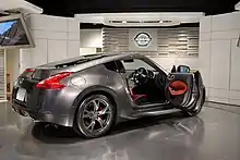 The Nissan 370Z (known as the Fairlady Z Z34 in Japan) is a 2-door, 2-seater sports car (S-segment in Europe) manufactured by Nissan Motor Company.[2] It was announced on October 29, 2006, and was first shown at an event in Los Angeles ahead of the 2008 Greater LA Auto Show,[3] before being officially unveiled at the show itself.[4][5] The 370Z is the sixth generation of the Nissan Z-car line, succeeding the 350Z. The 370Z marks the last production car with a naturally aspirated and high-rev V6 coupled to a manual transmission. The 2020 model year was the final model year for the 370Z.[6] The line was continued by the Nissan Z (RZ34) on a modified version of the same platform.
