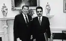 ![]() Hamdoon presented his credentials to President Ronald Reagan in the Oval Office in 1985 | |