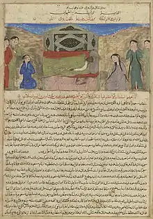 Muhammad Tapar was succeeded by his son Mahmud II (r. 1118–1131), who ruled over western Persia and (nominally) Iraq, but he faced many claimants. Sanjar, who held Khorasan since 1097, was generally recognized as the head of the Seljuk family.[72] The Nizaris maintained peaceful or friendly relations with Sanjar. According to Juwayni, Sanjar was prompted into these good ties after Hassan-i Sabbah had a eunuch place a dagger beside Sanjar's bed while he was asleep. Several manshurs (decrees) by Sanjar are recorded in the library of Alamut, in which the sultan had conciliated the Nizaris. Sanjar reportedly paid the Nizaris an annual of 3,000-4,000 dinars from taxes of Qumis and allowed them to levy tolls from the caravans passing beneath Girdkuh on the Khurasan Road. The peaceful final years of Hassan-i Sabbah, which were mostly spent consolidating the Nizari position, including the recapture of strongholds in Rudbar that had been lost in Shirgir's campaign, as well as intensifying the da'wa in Iraq, Adharbayjan, Gilan, Tabaristan, and Khurasan, is partly attributed to the Nizari ties with Sanjar.[73] Some Nizaris joined Sanjar's forces in his invasion of Mahmud II's territories in 1129. Mahmud II was defeated in Sawa and most of northern Persia, including Tabaristan and Qumis, which was penetrated by the Nizaris, came under Sanjar's rule. Mahmud II's brother, Tughril, later rebelled and took Gilan, Qazvin, and other districts.[74]