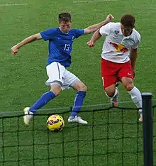![]() Noah Franke attempted to dribble past Hwang Hee-chan during a match between Creighton Bluejays and Red Bull Salzburg in 2015. | |||
