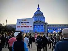 Nobody Is Above the Law was a protest held on November 8, 2018, organized by MoveOn to protect the Special Counsel investigation headed by Robert Mueller.[1][2] The nationwide demonstration saw events held in hundreds of cities,[3] and followed President Donald Trump's appointment of Matthew Whitaker replacing Jeff Sessions as United States Attorney General.[4][5] The hashtag '#ProtectMueller' trended on Twitter during the demonstration.[6]