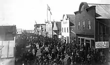Fires in 1905 and 1934,[30] as well as violent storms in 1900, 1913, 1945 and 1974, destroyed much of Nome's gold rush-era architecture. The pre-fire "Discovery Saloon" is now a private residence and is being slowly restored as a landmark.