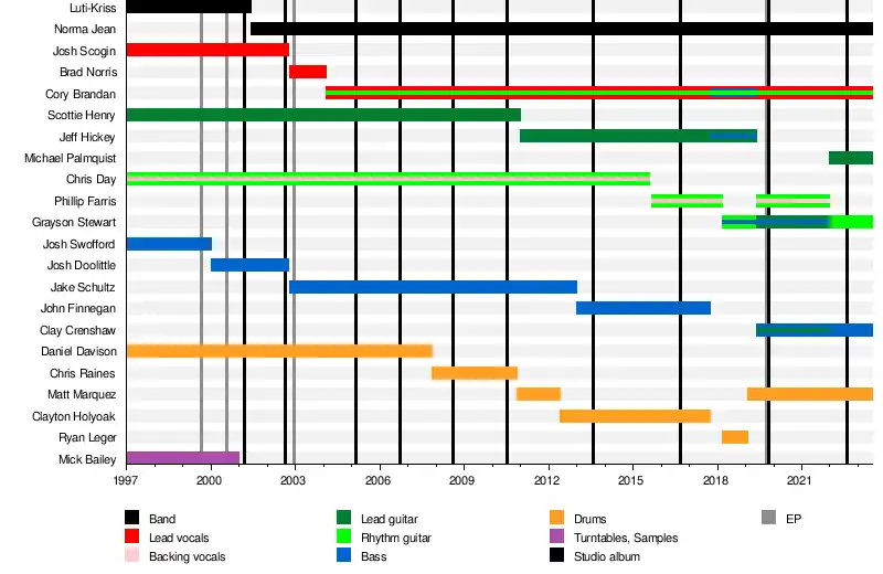 - Chris John Day – rhythm guitar, backing vocals (1997–2015)[24]
