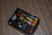 The proximity fuze was a small device on an artillery shell that would detonate the shell when close to the target, without requiring a difficult direct hit.[3] Previously fuzes had releid on a time or altitude setting in the fuze and an estimated target height close enough that the shrapnel cloud would impact the target. Given the extremes of aircraft target range and speed, and of shell accuracy of the day, the proximity fuze dramatically increased the effectiveness of anti-aircraft fire. After World War Two ended, Norman Krim got the go ahead from Laurence Marshall head of Raytheon, to build the first pocket portable tube radio using and adapting subminiature tubes for commercial products. The radio was called the Belmont Boulevard designed by Niles Gowell (Raytheon had acquired Belmont Radio Corp for this purpose).[4]