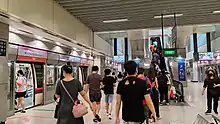 There are three MRT lines that operate in the North-East Region: North East line, North-South line and Circle Line. The North East line is the most prominent. It runs from HarbourFront station in the Central Region to Punggol station in the north, connecting six MRT stations within the North-East Region, namely Serangoon, Kovan, Hougang, Buangkok, Sengkang and Punggol stations.[28] In 2024 the line is expected to be extended to include the Punggol Coast MRT station, which is under construction.[29] Yio Chu Kang and Ang Mo Kio are the stations located on the North-South line in this region. Tai Seng, Bartley, Serangoon and Lorong Chuan stations are on the Circle line in this region.