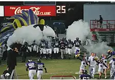 Starting in the mid-1990s, a 60' x 60' flag with the letters "UNA" was walked onto the field during pregame. Up to 60 participants would carry the flag onto the field in an honor that many campus organizations would have to sign up for during the pre-season to participate in. The tradition almost lasted 20 years and is no longer a part of pre-game ceremonies.[39]