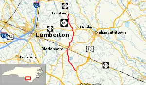North Carolina Highway 131 (NC 131) is a primary state highway in the U.S. state of North Carolina. It connects the city of Bladenboro to Fayetteville, via NC 87, and Whiteville, via US 701.