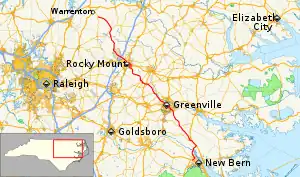 - 1 2 Google (May 14, 2015). "NC 43 Business - Rocky Mount, North Carolina" (Map). Google Maps. Google. Retrieved May 14, 2015.