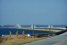NC 94 was established in 1930 as a new primary spur routing from NC 91, in Swindell Fork to Fairfield.[2] In 1931, NC 94 was extended north on new primary routing to NC 90, in Columbia.[3] In 1935, NC 94's southern terminus was rerouted to US 264, in Rose Bay; the reroute was a swap with NC 6.[4] In 1942, NC 94 was rerouted at Fairfield onto new primary routing directly south through Lake Mattamuskeet. The nearly 6-mile (9.7 km) causeway connects directly with US 264 near New Holland; the former alignment that went around the western banks of Lake Mattamuskeet were downgraded to secondary roads (Piney Woods Road (SR 1305) and Turnpike Road (SR 1304)).[5]