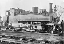In 1901, a J class 2-6-4-0T was delivered.[9][10] It was the first articulated locomotive to run on the line and was, at the time, the heaviest 2 ft (610 mm) narrow gauge locomotive in the southern hemisphere, weighing 42 tonnes. It was more powerful than its 3 ft 6 in (1,067 mm) gauge counterparts.[11] Its weight played havoc with the light rails it ran over and in 1910 it was replaced by the K class 0-4-0+0-4-0 Garratt locomotives.[8][12] The J class languished in the Zeehan locomotive shed until 1949, when it was scrapped.