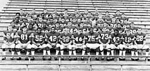The revival of the program after the war turned out to be one of the most successful stretches in school history. North Texas hired Odus Mitchell from Marshall High School to lead the team. In his first season, the Eagles went 7–3–1, winning the Lone Star Conference Championship and earning a bid to the team's first ever bowl game and victory, a 14–13 win over Pacific in the 1946 Optimist Bowl. The year was the first of seven consecutive winning seasons, which remains a school record. In his 21 years as head coach, Mitchell compiled 122 wins, and 10 conference titles, all of which still stand as school records for a single coach. Mitchell also coached North Texas to their first AP Ranking in school history (No. 16 during the 1959 season), and oversaw the transition from Eagle Field to Fouts Field in 1952 (North Texas won its first game 55–0 at the new stadium over North Dakota). He also recruited Abner Haynes and Leon King to North Texas in 1956, where the pair eventually broke the color barrier for college football in the state of Texas the next season. His second to last recruiting class in 1965 included future NFL Hall of Famer Joe Greene, who went on to become the only All-American in North Texas football history, and a four-time Super Bowl champion with the Pittsburgh Steelers.
