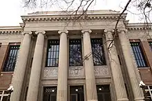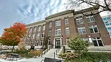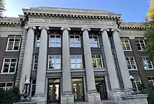 Built to replace Pattee Hall as the home of the University's Law School at the request of the School's third dean, Everett Fraser; whom the building was named after; as he believed Pattee's classrooms were inadequate and its library too flammable. The Law School remained at Fraser Hall for 50 years until it moved to Mondale Hall,[27] after which Fraser became a multi-purpose building. It was renovated once in the 1950s but received no structural upgrades for almost 70 years, resulting in the approval of a $144.7 million expansion by the State Legislature in 2023.[28] The State's grant covers two thirds of the cost, while the remaining third is set to be paid by the College of Science and Engineering over the course of 20 years.[24] Construction began in September of that year, and is expected to last until 2025. The original renovation is to be removed, while 18 new chemistry labs, collaboration spaces, and general-purpose classrooms will be added.[28]