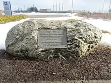 In memory of the victims, a black granite memorial was erected in 1994; it stands (surrounded by blue spruce trees) at the top of the hill at Middlebelt Road and I-94, the site of the crash.[23] The memorial has a dove with a ribbon in its beak reading, "Their spirit still lives on ..."; below it are the names of those who perished in the crash. Another monument to the victims (many of whom were from the Phoenix area) stands next to Phoenix City Hall.[24] Also, a marker stone is located at the General Motors Proving Ground in Milford, MI, in memory of the 14 GM employees and seven family members who were killed in the crash. Most were traveling to the GM Desert Proving Ground in Mesa, Arizona.