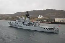 After the end of the war, the fisheries surveillance services were reorganized. A number of whaling ships which had participated in the Arctic convoys were put into use as surveillance vessels while the navy focused on minesweeping.[53] The surveillance was supplemented with Flower-class corvettes. Three used River-class frigates were taken into use in 1956,[54] allowing Nordkapp to be decommissioned in 1956 and Senja two years later.[52] The corvettes and later the frigates were used both for fisheries inspection and held in readiness for war. They, therefore, incurred high operational costs, were inefficient and had a large degree of conscripts.[55]